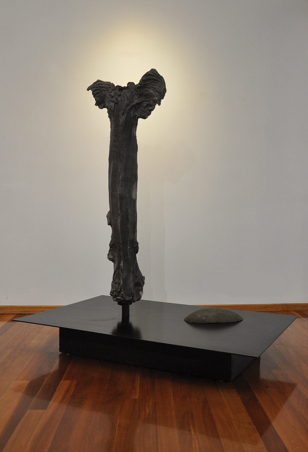 The Cavalry Myth - wood fired stoneware, black slip and fly ash, steel. 5 day firing in the Qdos Anagram wood kiln in 2022. There is no consensus as to the location of the site. Calvary or Golgotha was a site according to Christianity′s four canonical gospels, where Jesus was crucified. John 19:20 describes the site as near a city. According to Hebrews 13:12 it was outside the city gate. Matthew 27:39 and Mark 15:29 both note that the location would have been accessible to passers-by. Thus locating the crucifixion site involves identifying a site in the city of Jerusalem some four decades before its destruction in AD 70, outside a major gate near enough to the city that passers by could not only see Jesus, but also read the inscription - Jesus the Nazarene.