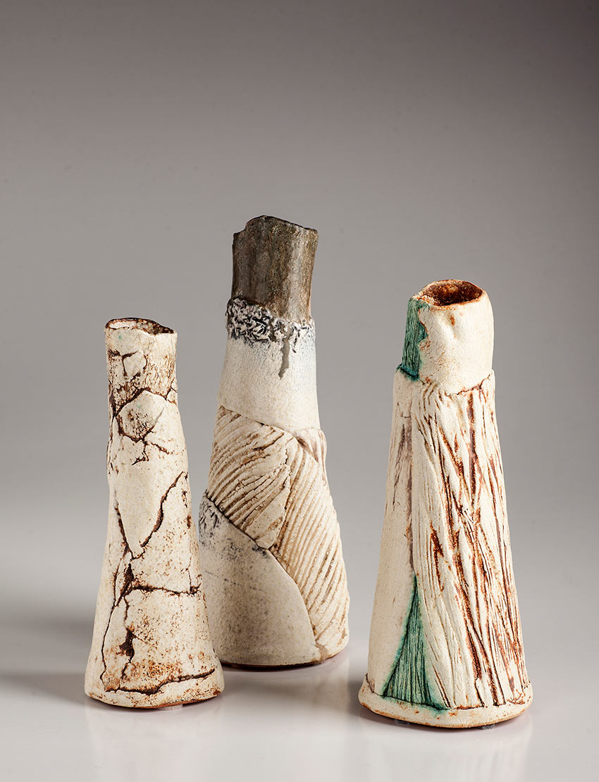 Elegy of the Shore I Group of 3 hand-built forms Multi-glazed, multi-fired 2024-25 Tallest 28H; Widest 30W cm $1800