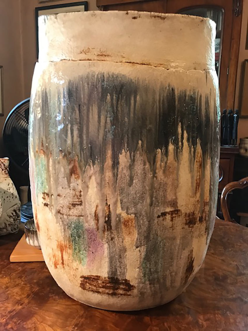 As the Day Begins… Large hand-built necked jar form, multi-glazed and multi-fired 2026 67h x 42 W x 26d cm $9,000