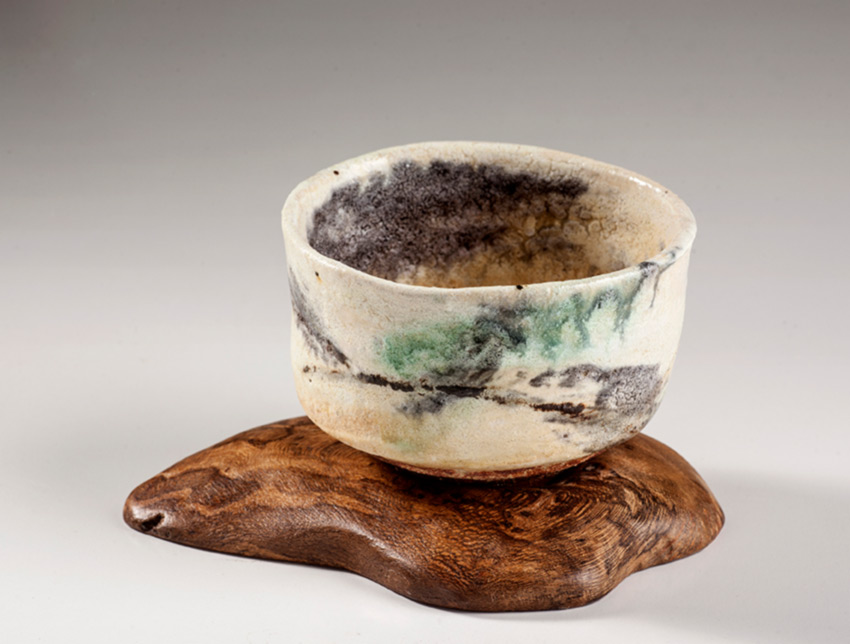 Tea bowl on found tea-tree timber base 2026 13d x 8.5h cm $950