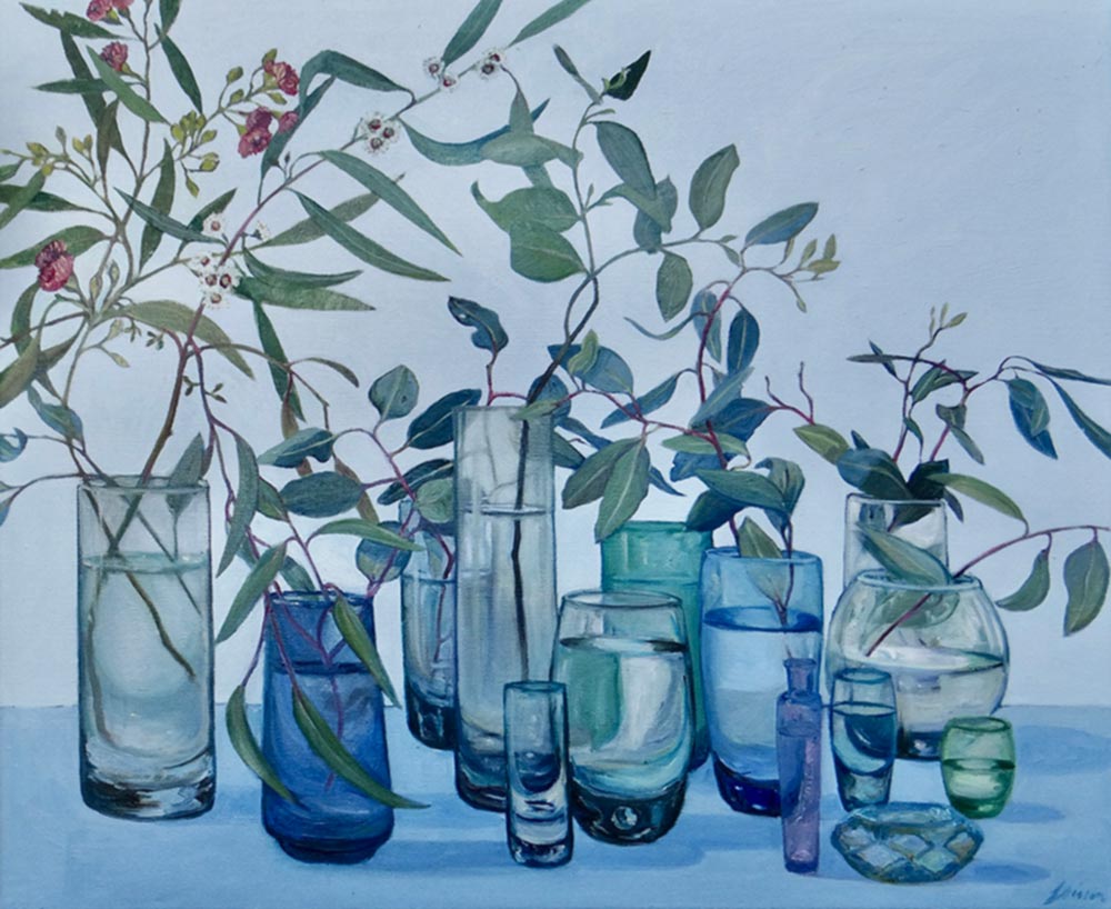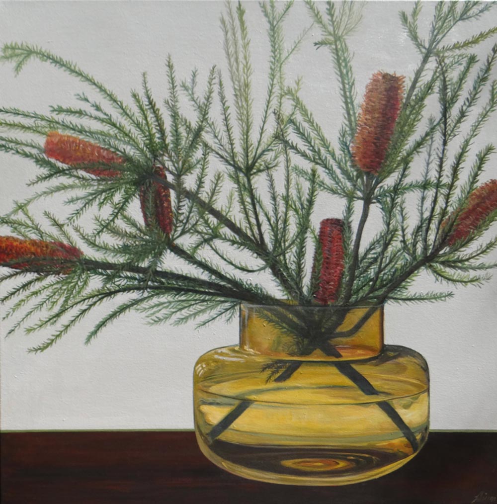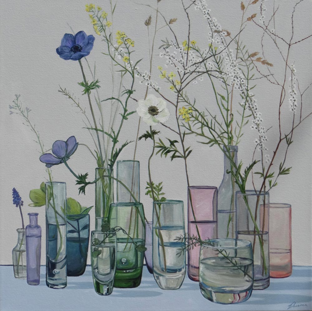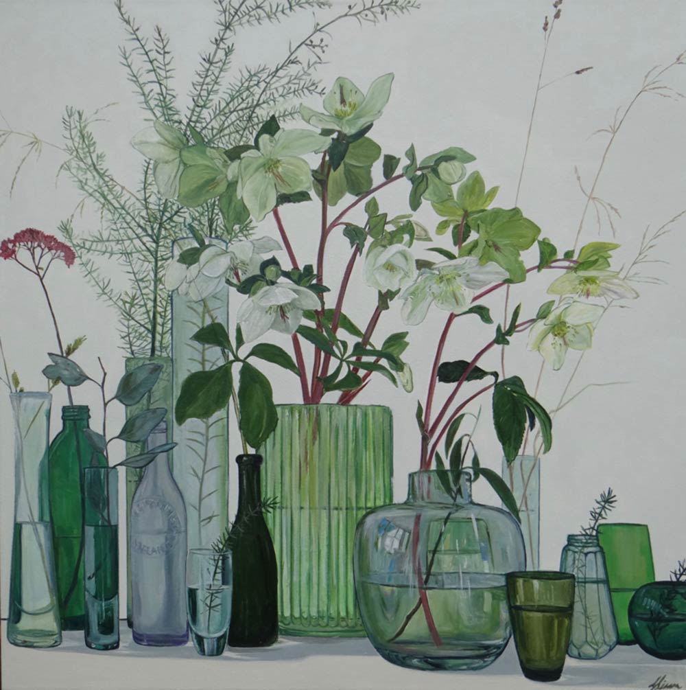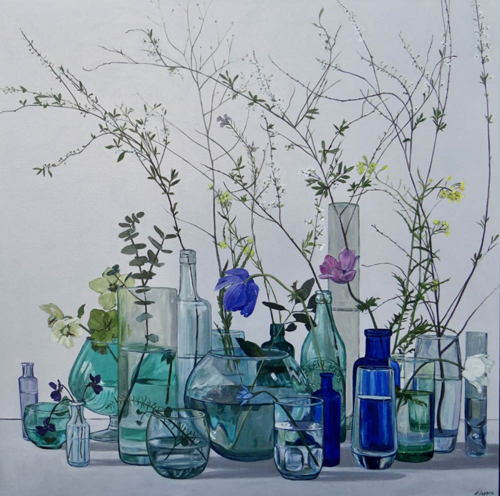 My recent still-life paintings combine a love of the untamed and wild nature of flowers, grasses and tree foliage.